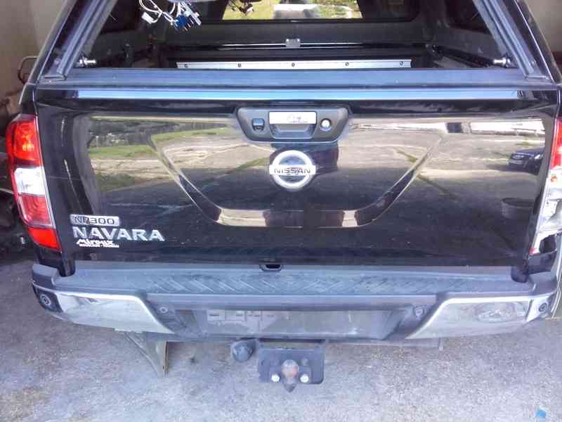 Prodám víko kufru na Nissan Navara NP 300, D23, r.v. 2016, černé, viz foto, u kliky je umístěna kamera, cena holých dveří 8000,- a nebo nastrojené dveře za 9500,-( s klikou, elektrikou a kamerou, bez vnitřního plastu, který patří k vaně, která je ve valníku.)