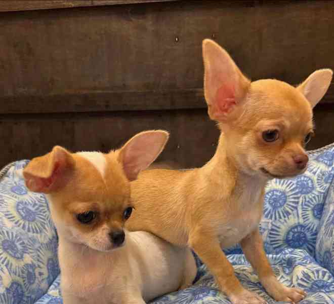Štěňata čivavy k adopci. Všechna odčervená, registrovaná a s aktuálním očkováním. Mají všechny doklady a cestovní pas. Pro více informací a fotky nám napište na email nebo WhatsApp: + +4915124985419.