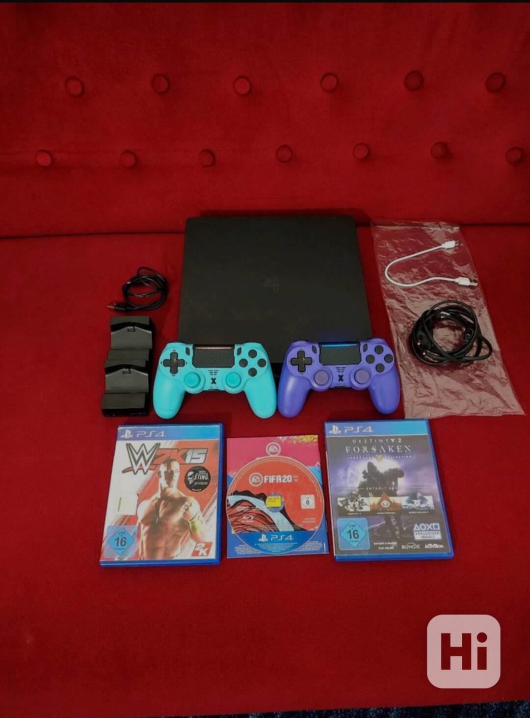 Prodám plně funkční PS4 Slim 500GB s dvěma ovládací a hry. Vše funkční včetně veškeré kabeláže. Neposílám na dobírku, osobní vyzvednutí pouze po platbě zálohy. Možná sleva při rychlém a seriózním jednání.