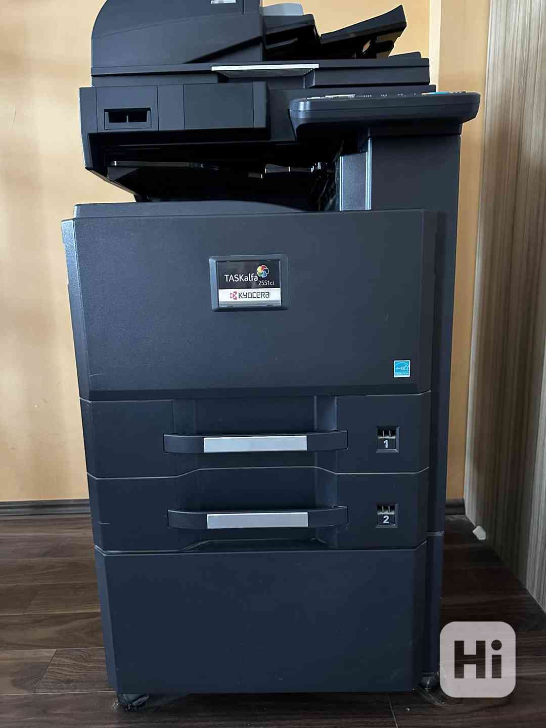 Dva velké zásobníky na papír (kazety) plus boční podavač.
